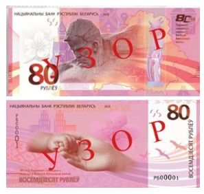 31 марта 2025 года Национальный банк Республики Беларусь выпускает в обращение памятную банкноту номиналом 80 рублей, посвящённую 80-летию Победы советского народа в Великой Отечественной войне.