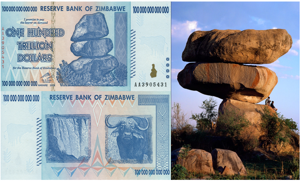 Изображённые на банкнотах балансирующие скалы Чиремба -это не просто фон. Эти геологические образования из гранита и железной руды стали частью логотипа Резервного банка Зимбабве ещё в 1980 году. Они символизируют поиск баланса между традициями прошлого и развитием будущего. Их форма — результат миллионов лет эрозии и вулканической активности.
