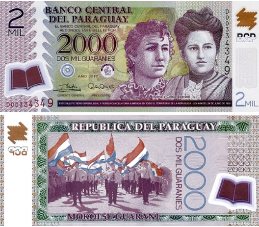 Как полимерная банкнота, 2 000 гуарани получила целый набор современных средств защиты: