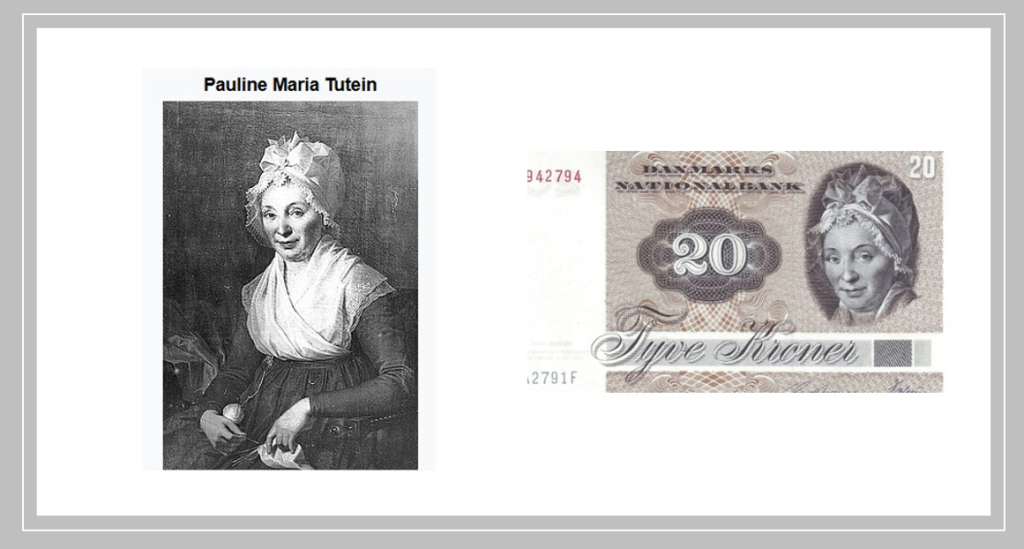 Портрет Паулины Марии Тутейн представительницы купеческого рода Копенгагена, изображённой с лёгкой улыбкой и кружевным чепцом.