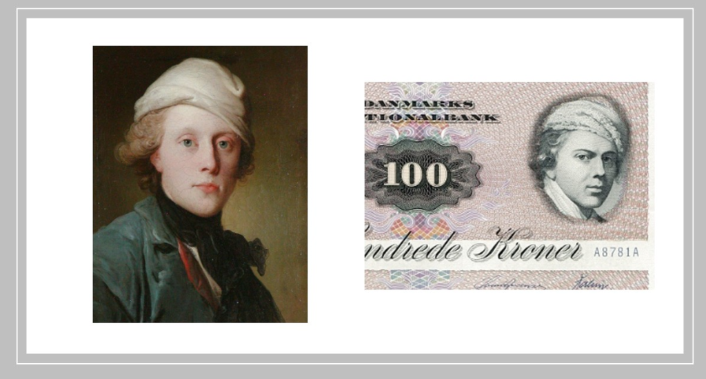 Эта банкнота выделяется портретом самого Йенса Юэля, художника, чьи картины вдохновили всю серию. Его строгий взгляд обращён в прошлое, а фон выполнен в тёплых коричнево-серых тонах.