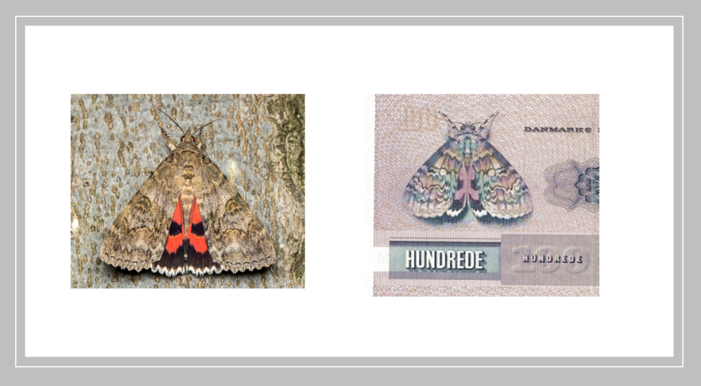 100 крон Jens Juel и краснокрыль (Catocala nupta)