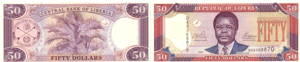 (Либерия P-29, 50 долларов 2003-2011, Сэмюэл К. Доу)