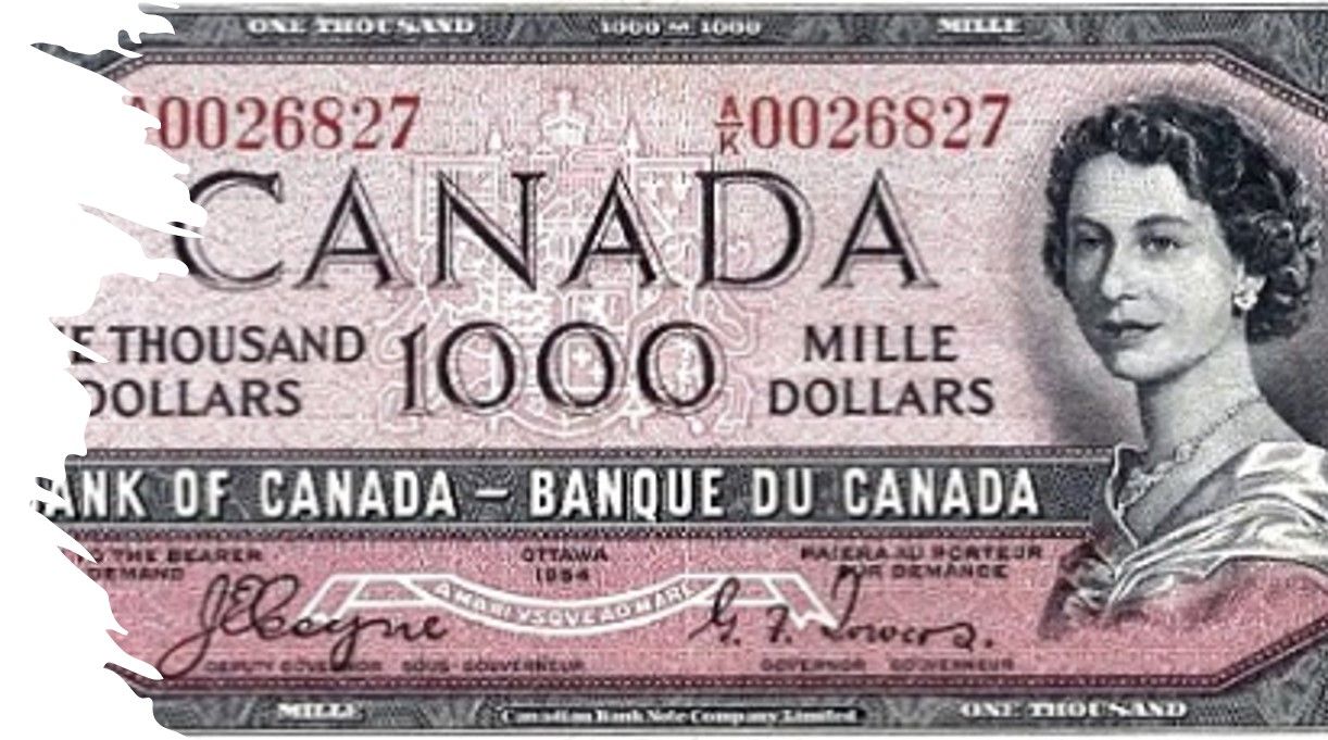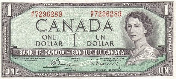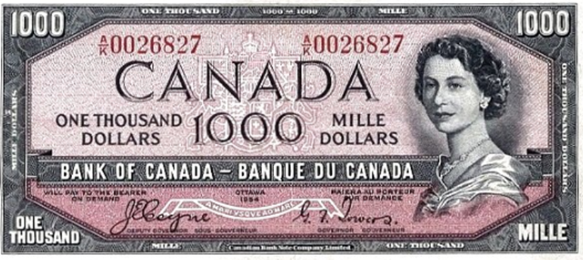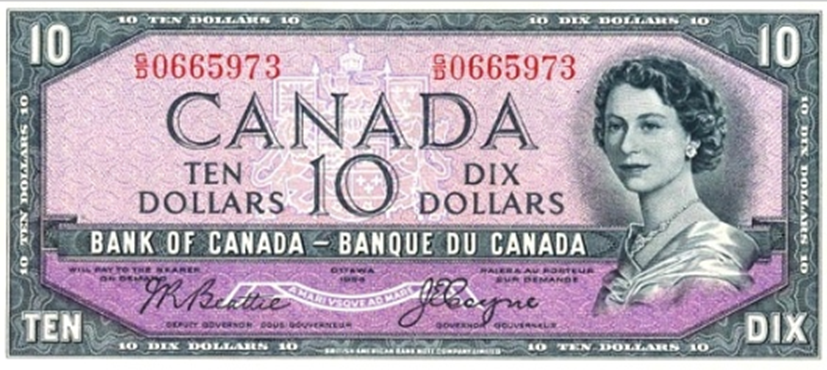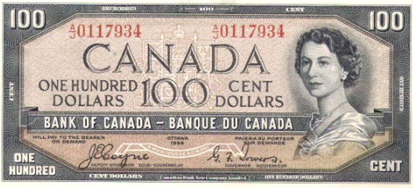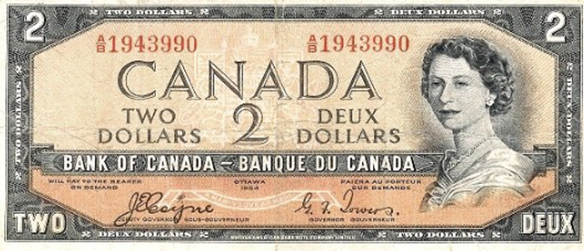 Банкнота была выпущена Банком Канады в 1954 году вскоре после начала правления королевы Елизаветы II. На банкноте изображён портрет молодой королевы, выполненный на основе фотографии Дороти Уайлдинг. За гравировку отвечал Джордж Гундерсон из British American Bank Note Company. Целью было создание элегантного и торжественного изображения, но непреднамеренный эффект в виде «дьявольского лица» вызвал недоумение у общественности.