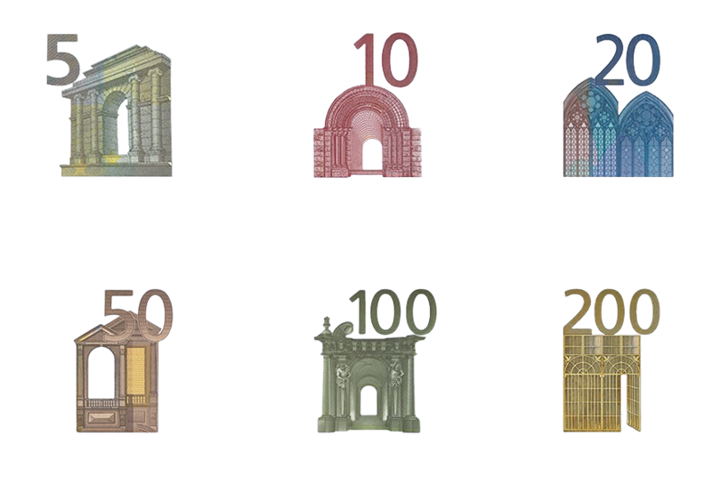 - Архитектурные образы на банкнотах евро