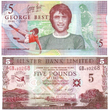 - Северная Ирландия: Джордж Бест на купюре 5 фунтов