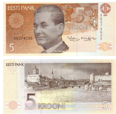 На лицевой стороне банкноты изображен эстонский шахматист, один из сильнейших шахматистов мира 1930—1960-х годов. Вошёл в список «100 выдающихся эстонцев XX века», признан лучшим спортсменом Эстонии в XX веке. Первый в истории шахматист, которого изобразили на банкнотах.