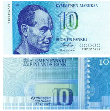 На лицевой стороне банкноты изображен Пааво Нурми – финский легкоатлет, бегун на средние и длинные дистанции.