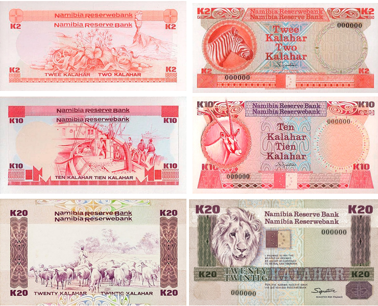 Первоначально рассматривалось название «калахар», были даже подготовлены пробные банкноты. Но в итоге было принято решение назвать валюту намибийским долларом (NAD) - сильный политический жест, подчёркивающий суверенитет и отказ от колониального прошлого. Несмотря на то что NAD до сих пор жёстко привязан к южноафриканскому рэнду (1:1), это самостоятельная валюта с собственным дизайном и символикой.