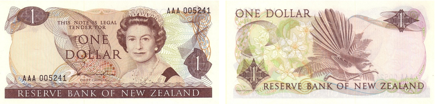 Эта серия стала первой, выпущенной после перехода на десятичную валюту в 1967 году. Она получила название “Elizabeth II” Dollar Issue, так как на лицевой стороне всех банкнот размещён портрет королевы Елизаветы II. Банкноты оформлены в разной цветовой гамме и на реверсе содержат изображения эндемичных птиц Новой Зеландии, подчёркивая уникальность природы страны. Дизайн серии выполнен британской типографией De La Rue.1 доллар P-163