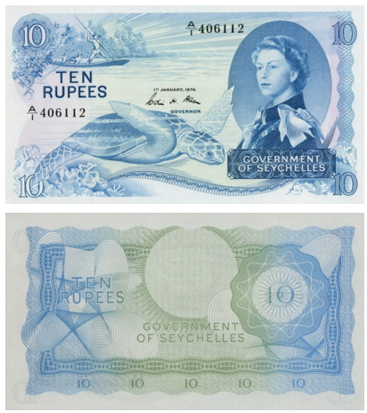 Каждая банкнота этой серии объединяет британский классический стиль и уникальную природу Сейшел.