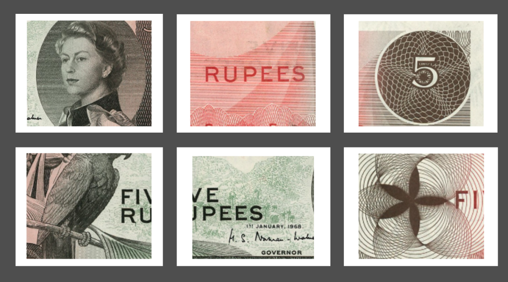 | 5 Rupees | 1968 | Hugh Selby Norman-Walker | Черный попугай Сейшел (Seychelles Black Parrot) | Pick 14 |