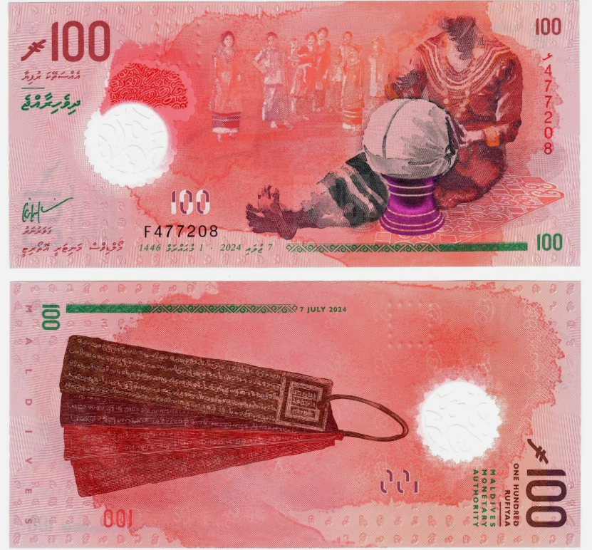 Центральный банк Мальдивской Республики (MMA) объявил о выпуске обновленной банкноты номиналом 100 руфий, которая поступит в обращение 19 января 2025 года. Новая полимерная банкнота продолжает традиции серии «Ran Dhiha Faheh», впервые представленной в 2016 году в честь 50-летия независимости Мальдив.
