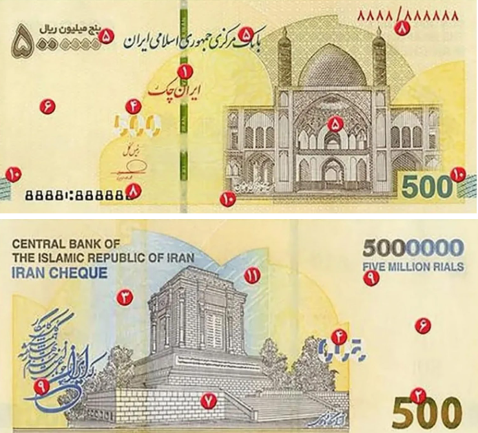 Новый выпуск сохранил весь комплекс современных мер защиты, применяемых в иранских чеках: