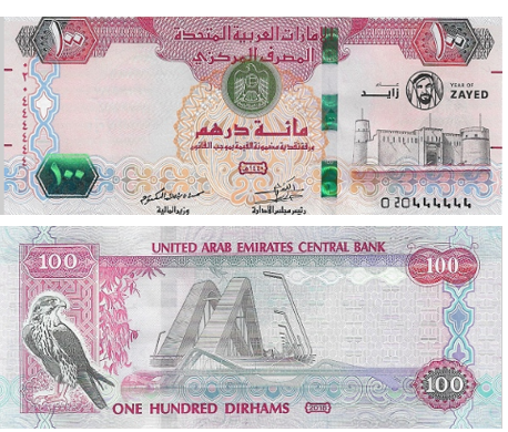 В 2018 году была выпущена памятная банкнота номиналом 100 дирхамов, посвящённая “Году Шейха Зайеда” к 100-летию со дня рождения основателя Объединённых Арабских Эмиратов.
