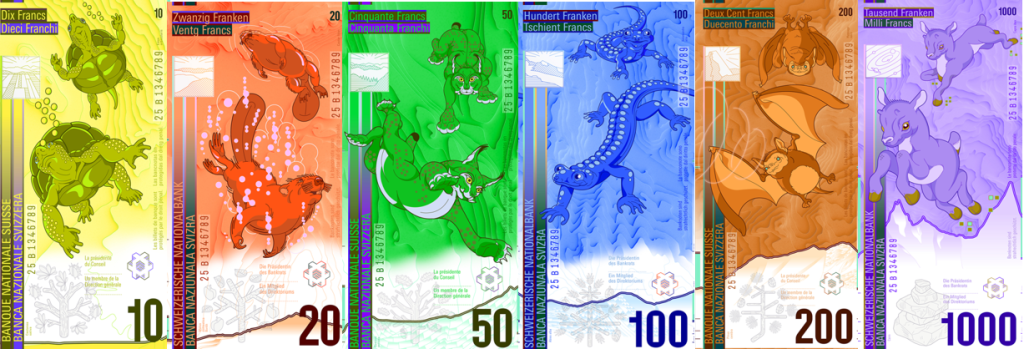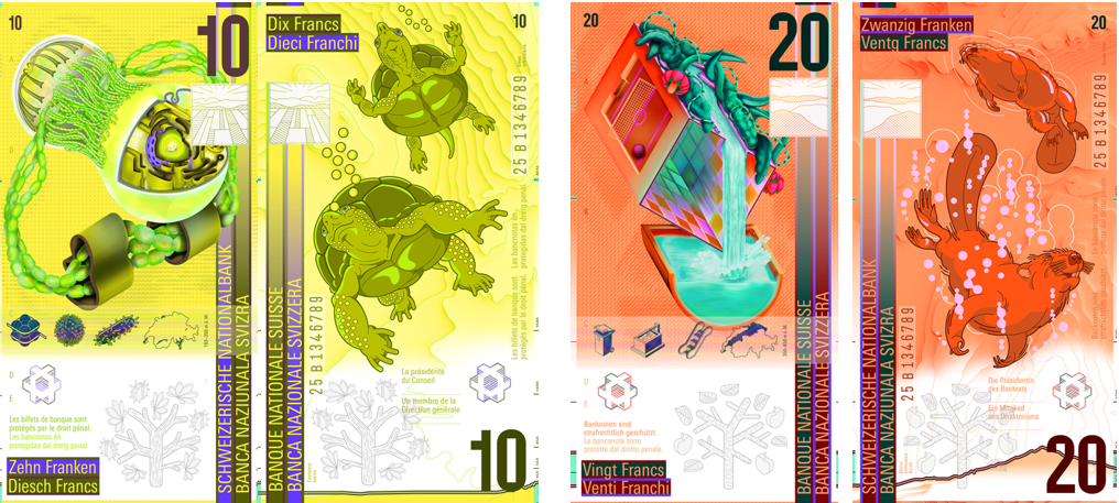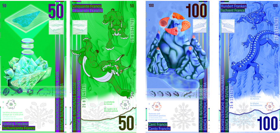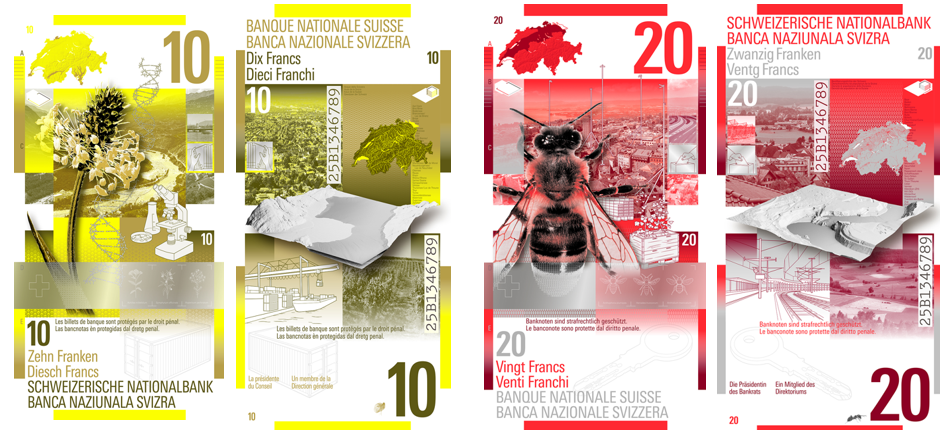 Продолжаем знакомиться с проектами новой серии швейцарских банкнот. В этой статье , концепции C и D, раскрывающие темы топографии, идентичности и прогресса