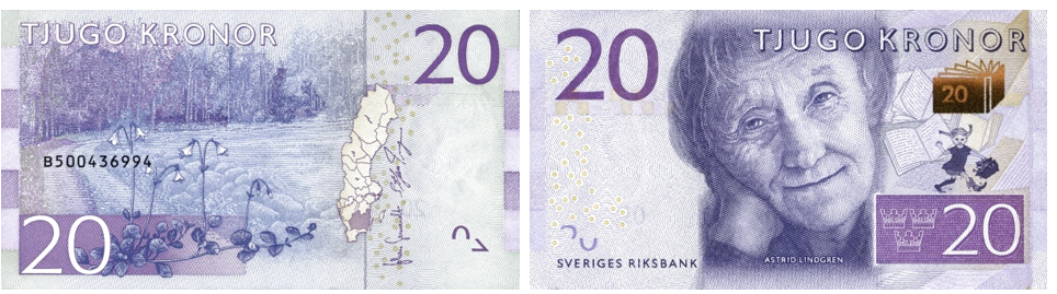 Швеция: Астрид Линдгрен на банкнотах