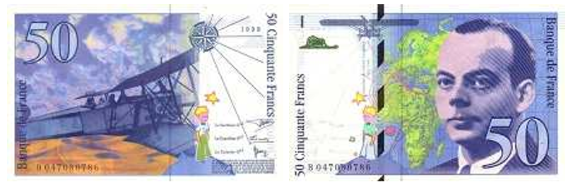 Франция: Антуан де Сент-Экзюпери на банкнотах
