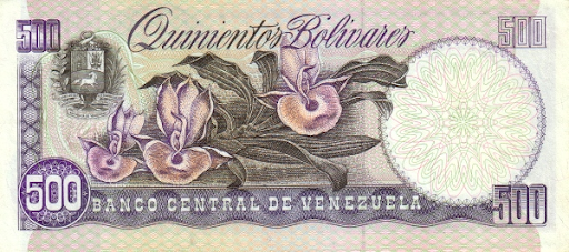 1 тыс.VEB (1998), на внешней стороне – Simon Bolivar, на обратной – ветка орхидеи и Национальный пантеон Венесуэлы в Каракасе.