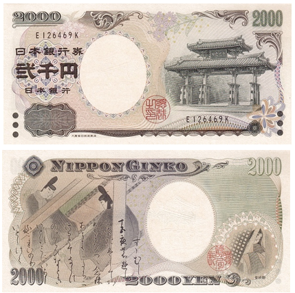 и нового тысячелетия была введена в обращение серия D. В этой серии была банкнота одного номинала – 2.000 иен (впервые в истории денежного обращения