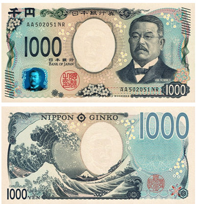 Как Вы уже убедились в настоящее время на японских банкнотах печатаются портреты людей периода Мэйдзи и более поздних лет. Причина этого в том, что с точки зрения предотвращения подделок желательно использовать в качестве оригинала точную фотографию, а не картину для портрета.