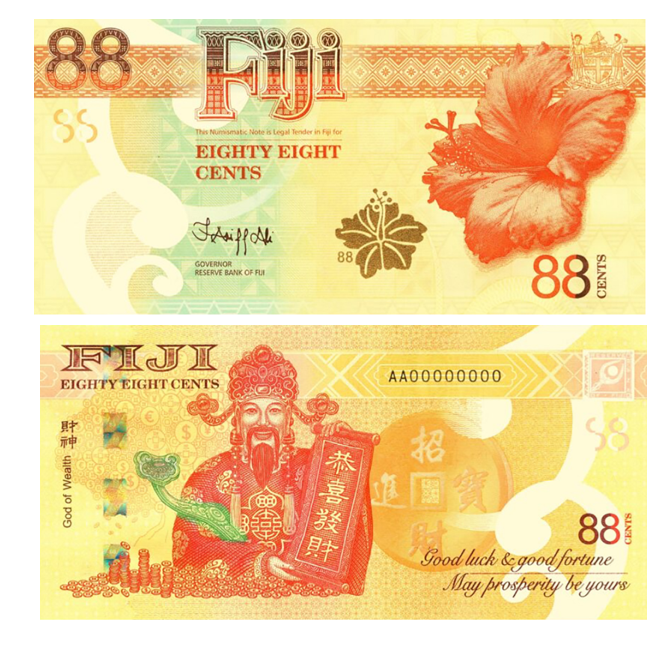 Центральный банк Фиджи 8 августа 2022 года представил новую банкноту достоинством  88 центов, банкнота является законным платежным средством, но представляет, скорее, только нумизматическую ценность, цена банкноты 28  FJD, что соответствует примерно 13 USD. Ориентировочная дата поступления этой банкноты в продажу сентябрь 2022.